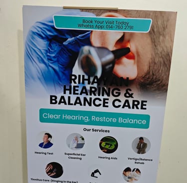 Rihayan Hearing & Balance Care is a comprehensive audiology clinic providing professional hearing tests, balance assessments, special needs diagnostic services, and personalized hearing aid solutions for all ages. Our certified audiologist delivers accurate evaluations, compassionate care, and long-term follow-up to support better hearing, communication, and quality of life. Experience patient-centred, evidence-based audiology services in a comfortable and family-friendly environment.